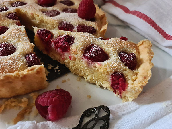 The version we are sharing with you today is quite contemporary. It includes fresh raspberries and almond flour both in the crust and filling.